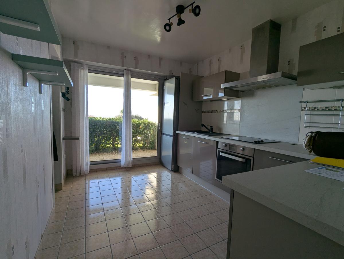 SAINT BREVIN L'OCEAN centre et face Mer en rez-de-chaussée, Location 3 chambres, séjour, cuisine aménagée et équipée, une salle de bains, un wc, terrasse privative, cave et parking.