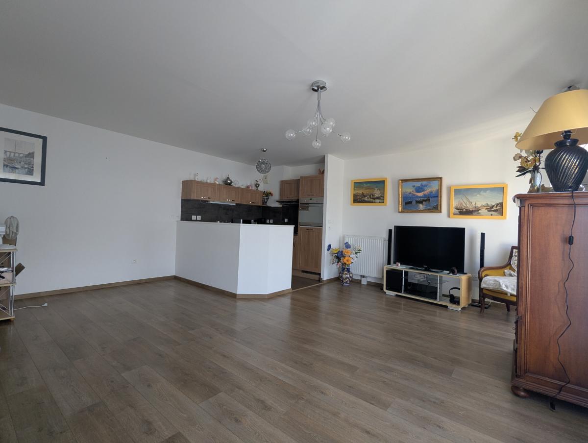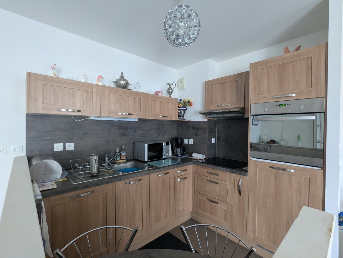 Appartement récent Plein centre de Saint Brevin Les Pins, comprenant une entrée avec placard, un séjour avec une cuisine aménagée, deux chambres, une salle d'eau et un wc. Plusieurs rangements dans l'appartement.