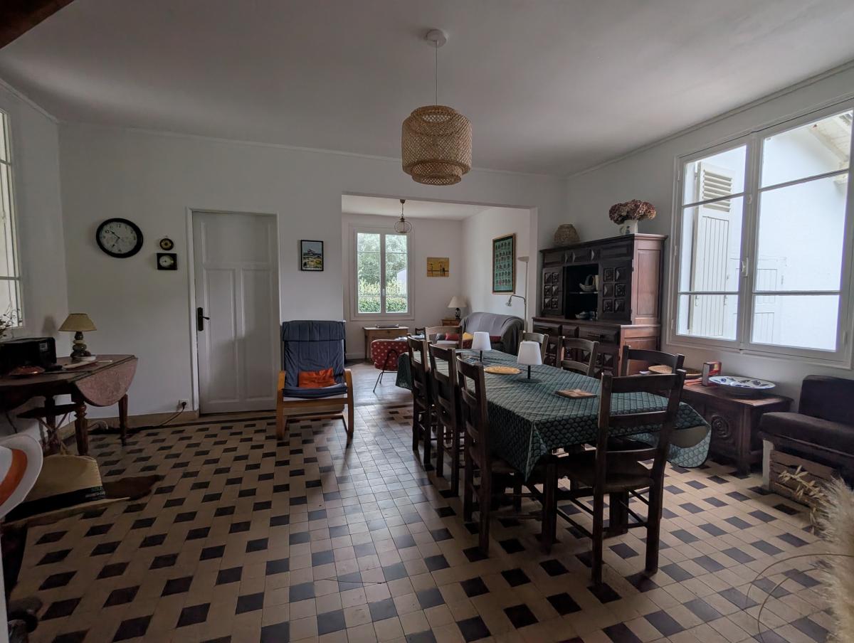SAINT BREVIN L'OCEAN, quartier Les Rochelets, à quelques pas de la plage, maison à rénover, comprenant une belle pièce de vie avec poêle à bois installé en 2018, une cuisine, deux chambres, une salle de bains, un coin douche et un wc.